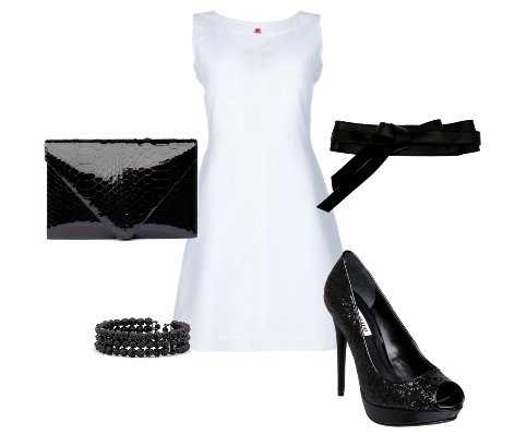 El blanco y negro pueden estar mezclados en el mismo vestido o ayudarte con el uso de accesorios negros (correa, zapatos, cartera, pulsera, entre otros) en un vestido totalmente blanco.